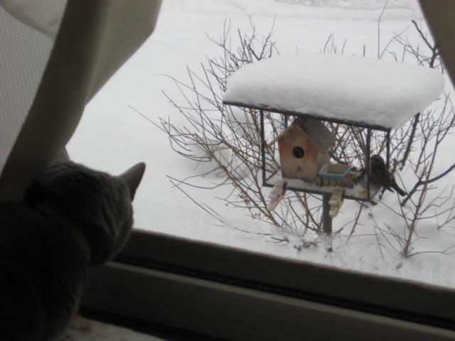 季々は鳴きはしないものの、年中見ているスズメよりは関心があるらしく、いつもじ~っと見つめています。