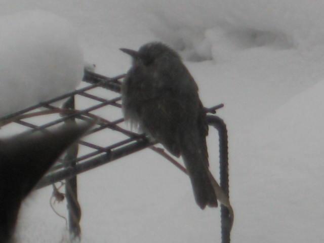 体はツグミちゃんより大きいのに追い払われているヒヨドリのひよちゃん^m^