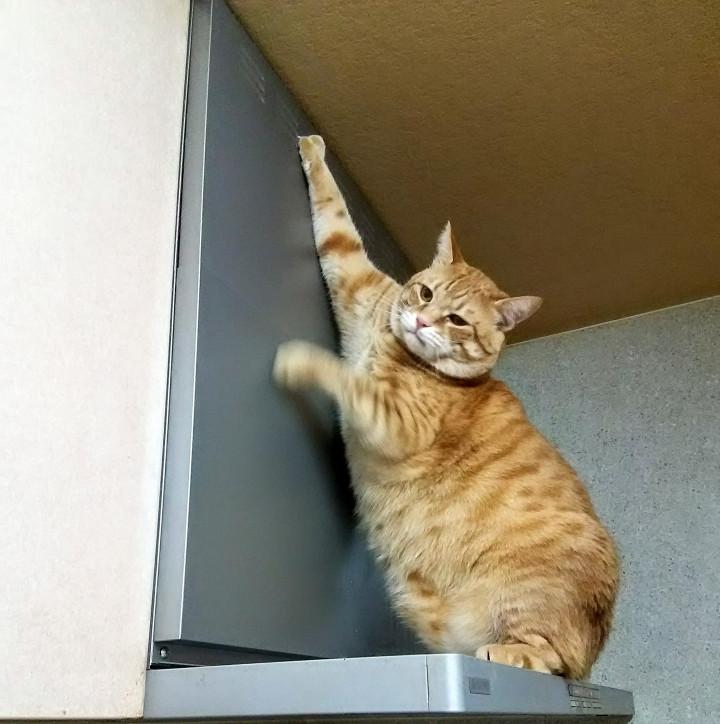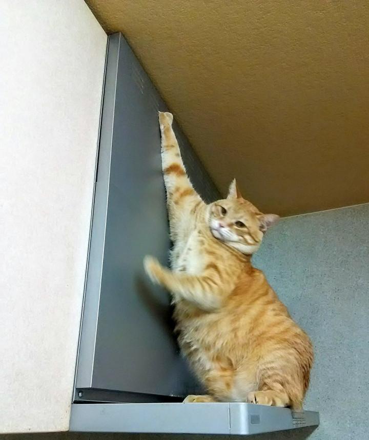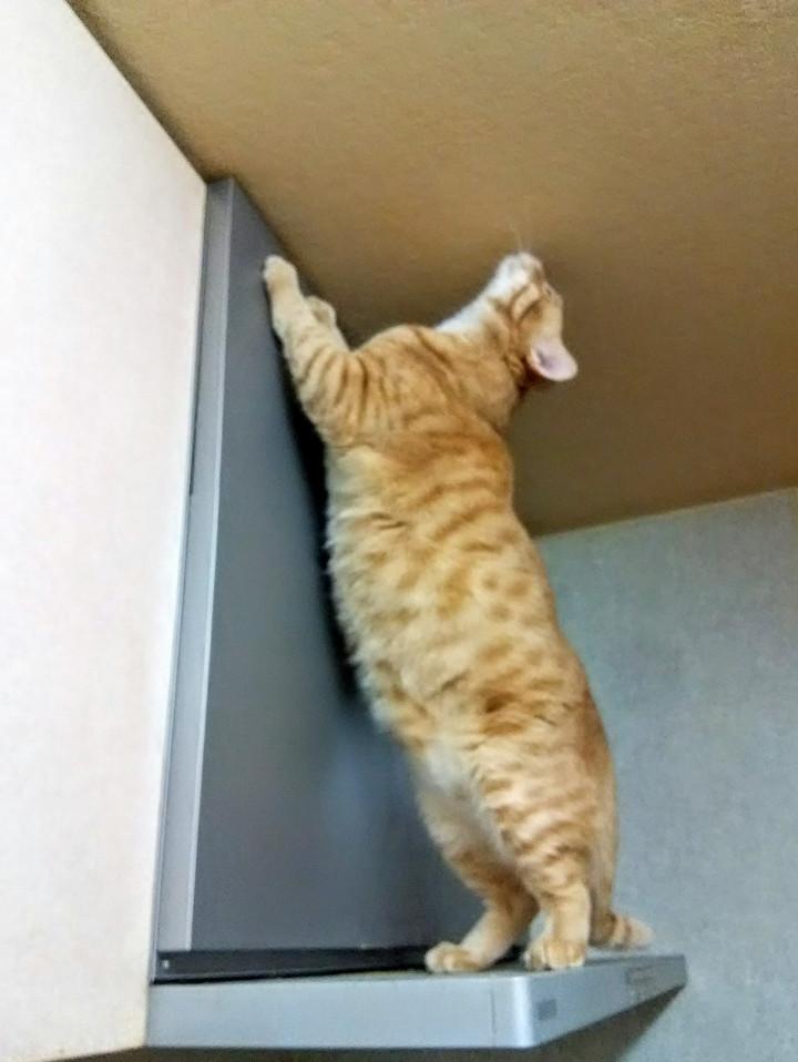 ⬆天井をクンクン、油の匂いでもする~?