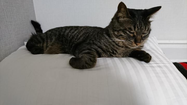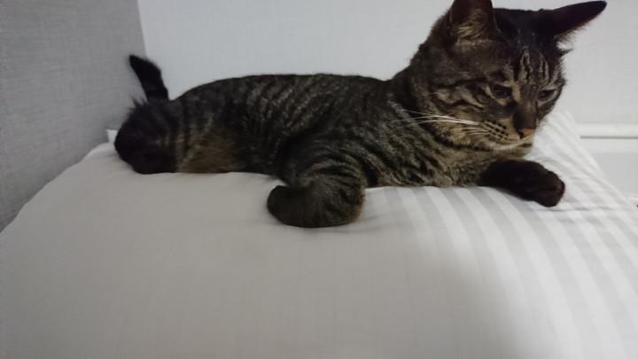 その後しめじは噛まれて飛び起きた私の枕を横取りして昼寝を始めました(笑)