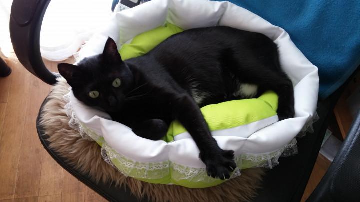 ※美雨様が寝ているベッドはヒカルのママさんに作っていただいたもので、美雨様これがすっかりお気に入りです。