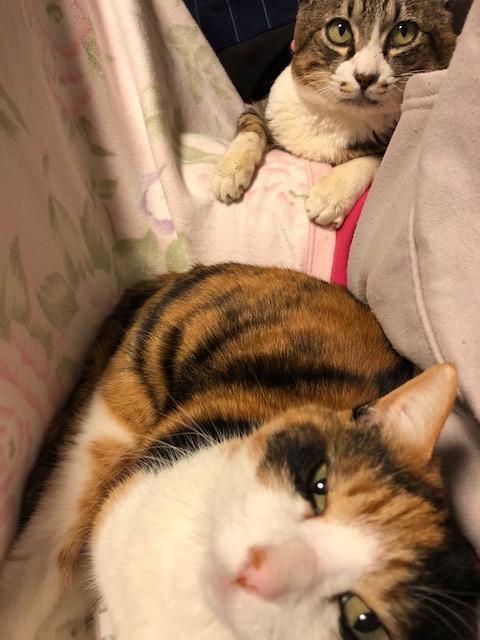 みんな猫団子になることはないが、それぞれの場所でくつろぎ、人にくっつき過ごしてる。