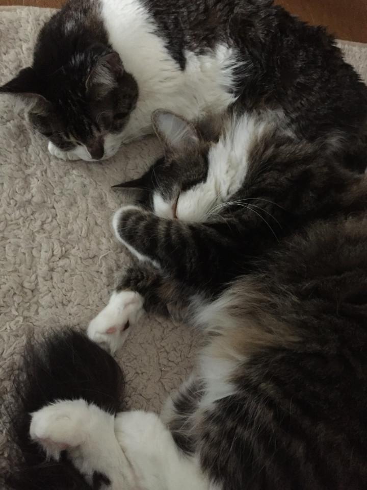 毛の色合いが似ているし、こうして仲良く眠っている光景に疲れも吹き飛びます🎵