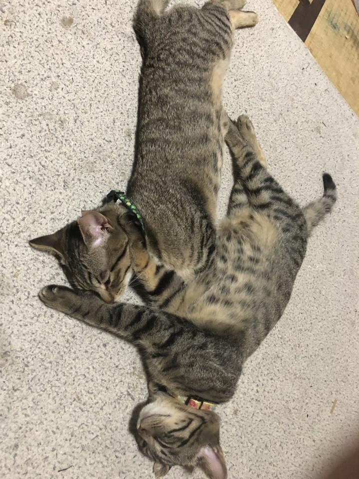 やっぱり一緒にホットカーペットで寝てる仲良し姉妹ちゃんです