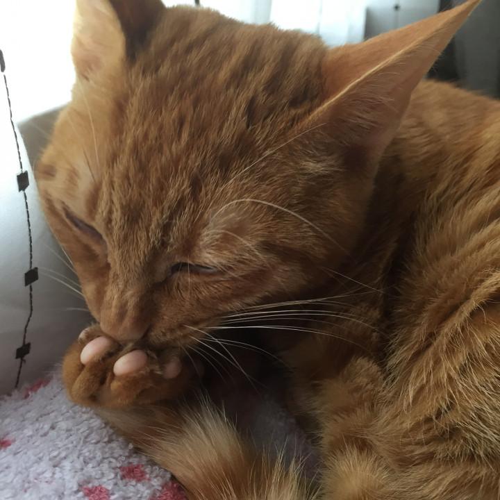 よく右手のひらを舐めてるんですが、ついに手のひらの毛綺麗さっぱり抜いてツルツルになっちゃって…🙀