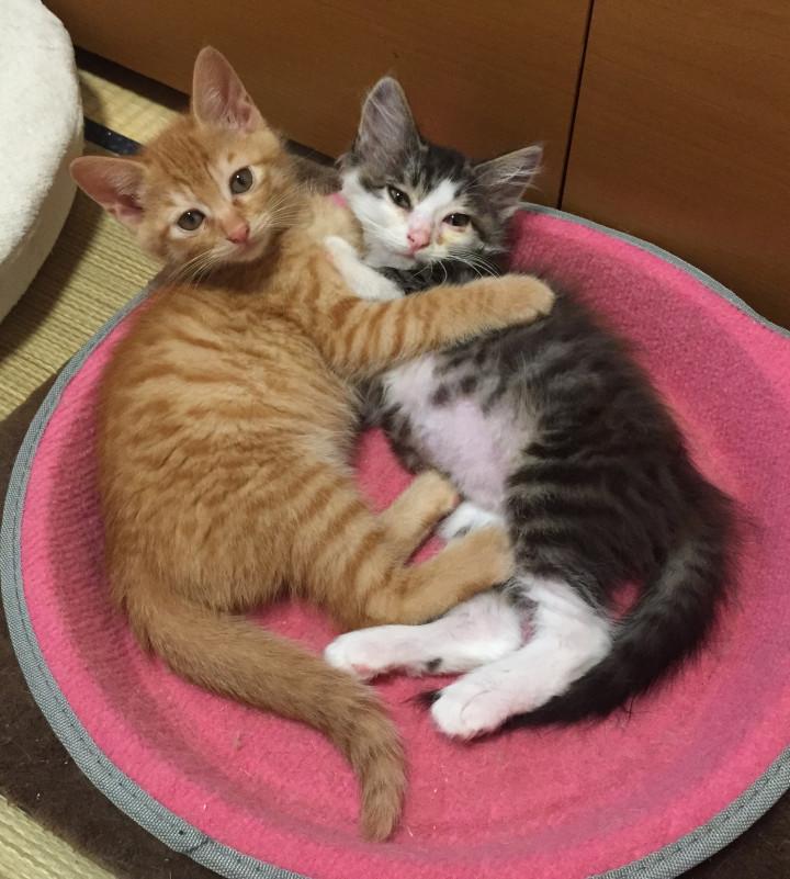 笑と門は2ヶ月の頃、ネコジで門ちゃんの里親募集がキッカケで我が家の一員となりました🌱