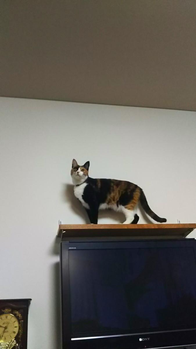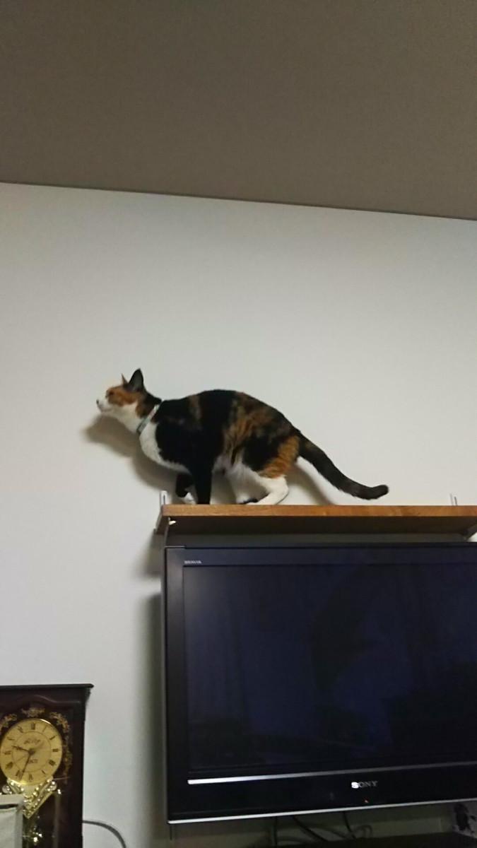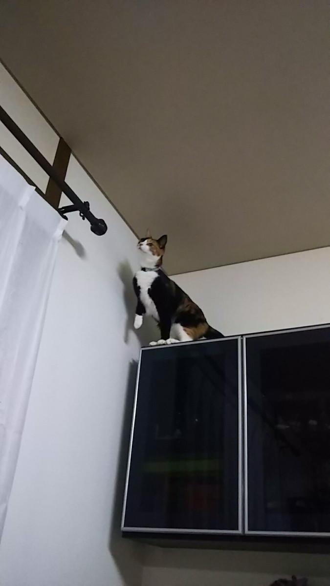 リンがテレビの上から吊り戸棚の上、そしてカーテンレールに上がろうとしているだけです。