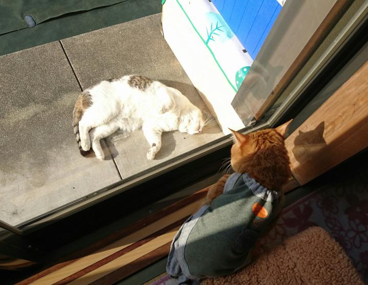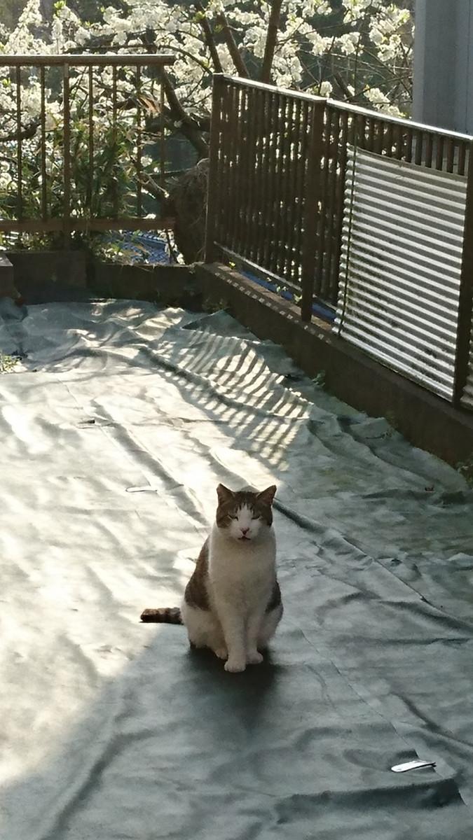 朝雨戸をあけると、、にゃ!と挨拶してくれます。