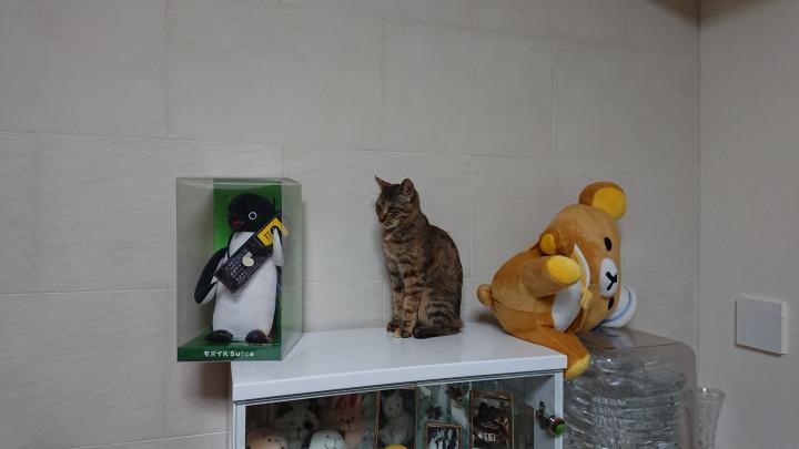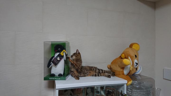 しばらくして見てみたら、棚の上から先住者を排除しよーとしてる???
