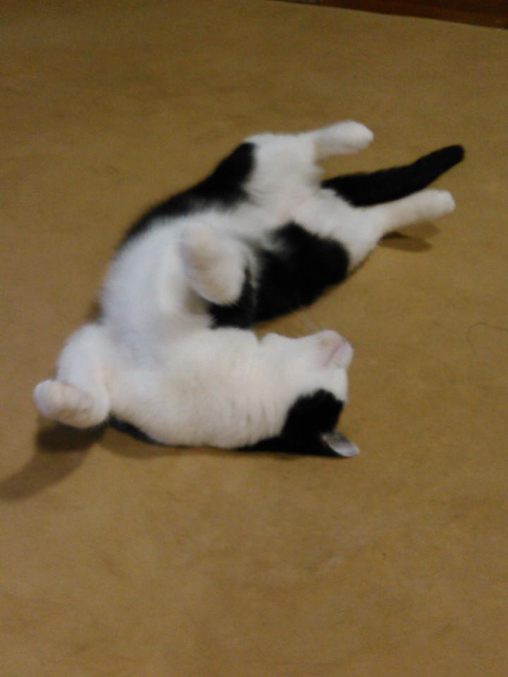 私が台所にいる時はそばにいたいからかな。ごろっと寝ころんでますが。