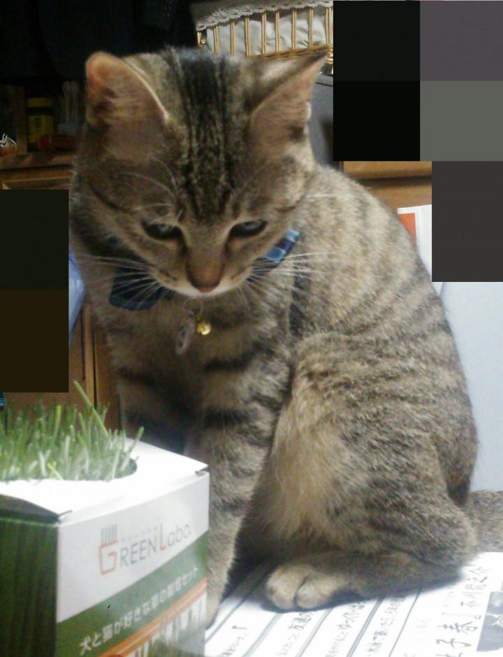 この写真は猫草を見ていますが、グッピーのいる水槽をよくこうやって見ていました(*^^*)