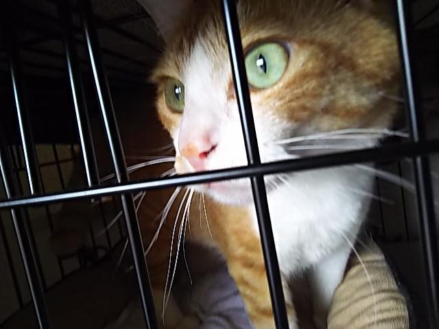ケージの中のネコマルくんに