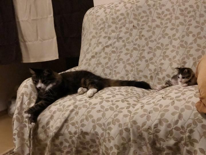 息子の部屋で隔離し、少しずつ龍馬と幸ちゃんを慣らしてゆき、りんりんは今まで、猫被ってたの?って思うぐらい、お転婆でイタズラっ子になりました。(笑)