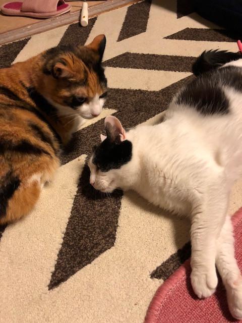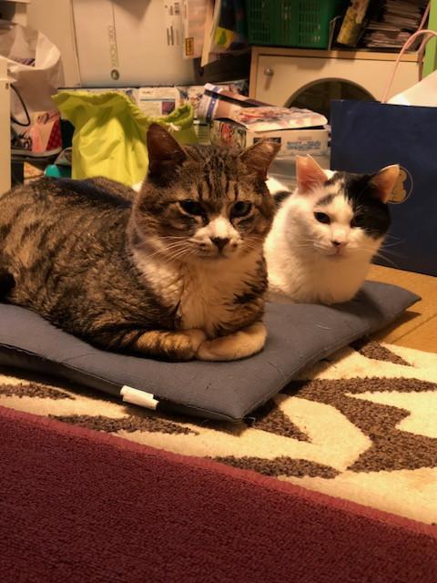 ばらばらび位置に落ち着く。猫団子も、毛づくろいしあいっこも実現はむづかしそうです( ゚Д゚)💦