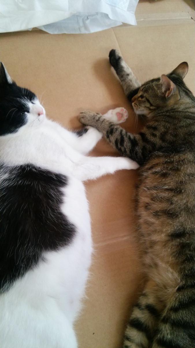保護する前に体調が悪そうな状態があり、保護してからは元気になり、ご飯をモリモリ食べていて、パンとも仲良く過ごしてました。