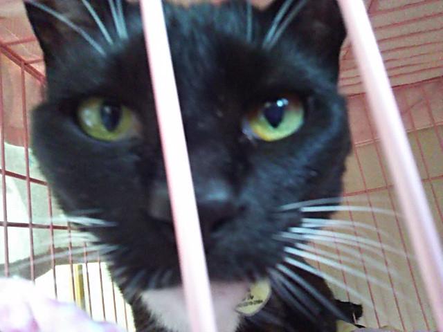 ケージの外から延び上がって猫パンチ