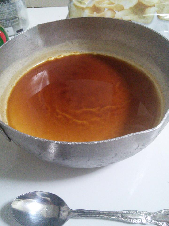 まぁ、作り方も粉を牛乳で溶いて煮るだけだし、カラメルソースも粉を水で溶いただけの物。