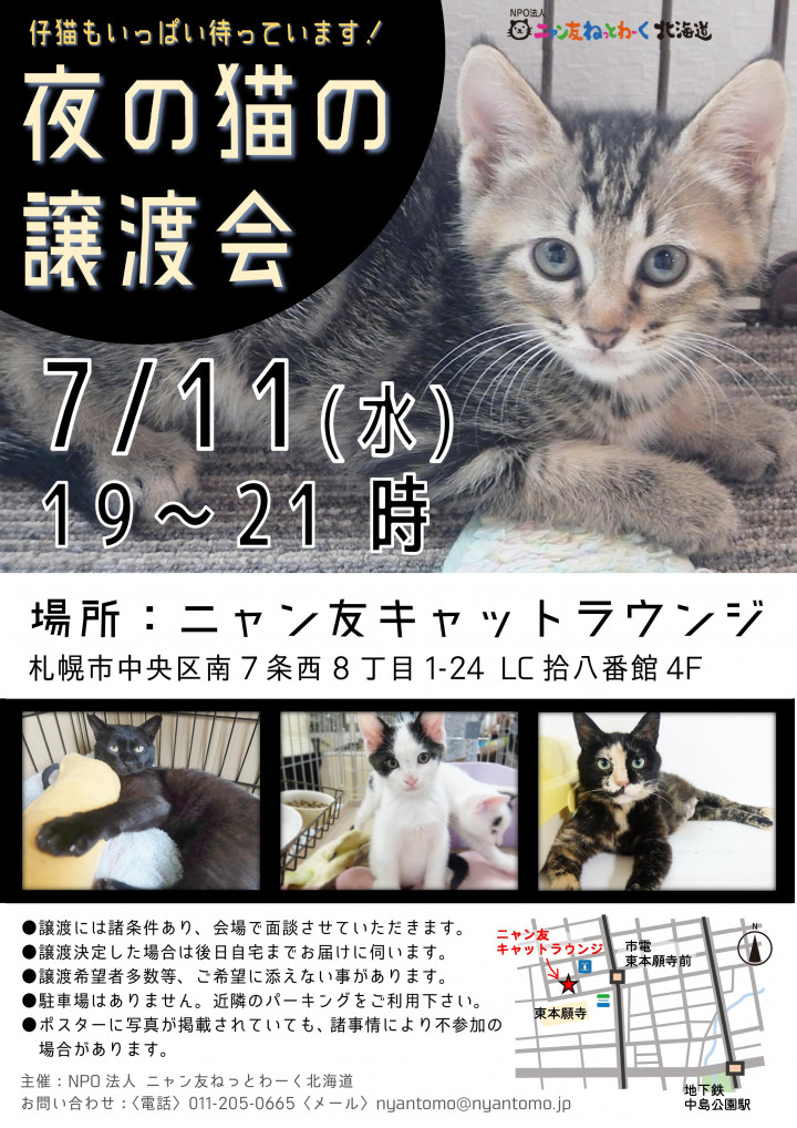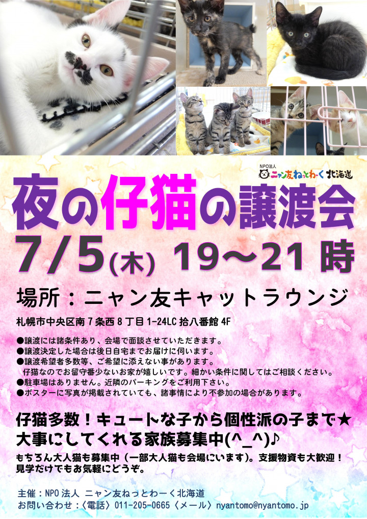 7/5の譲渡会も一部大人猫が会場にいますが