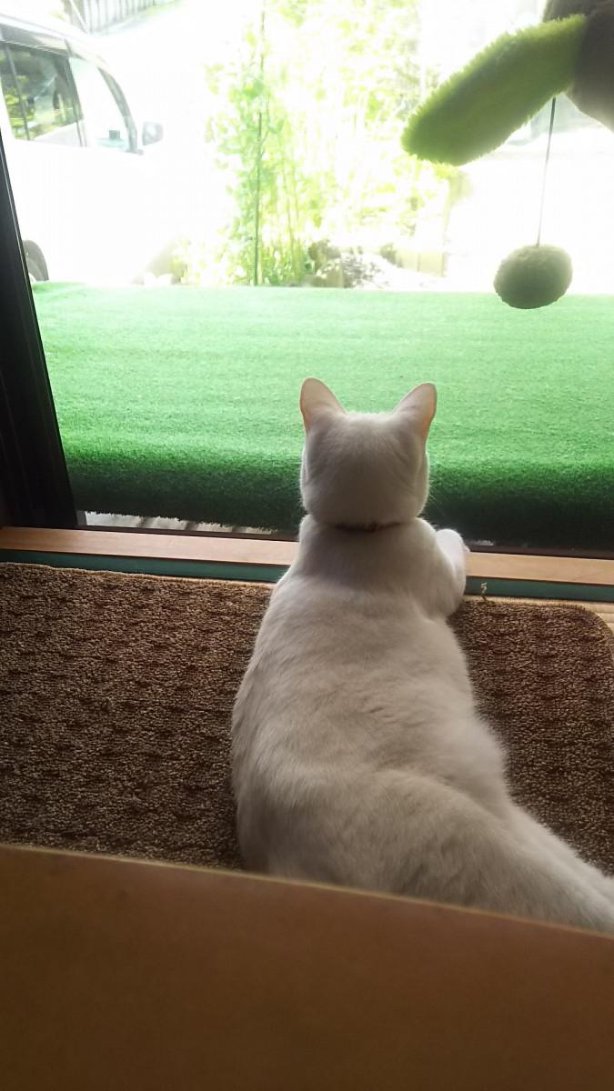 遊んでほしいけど遊んでくれないので仕方なく外を眺めてる餅子嬢
