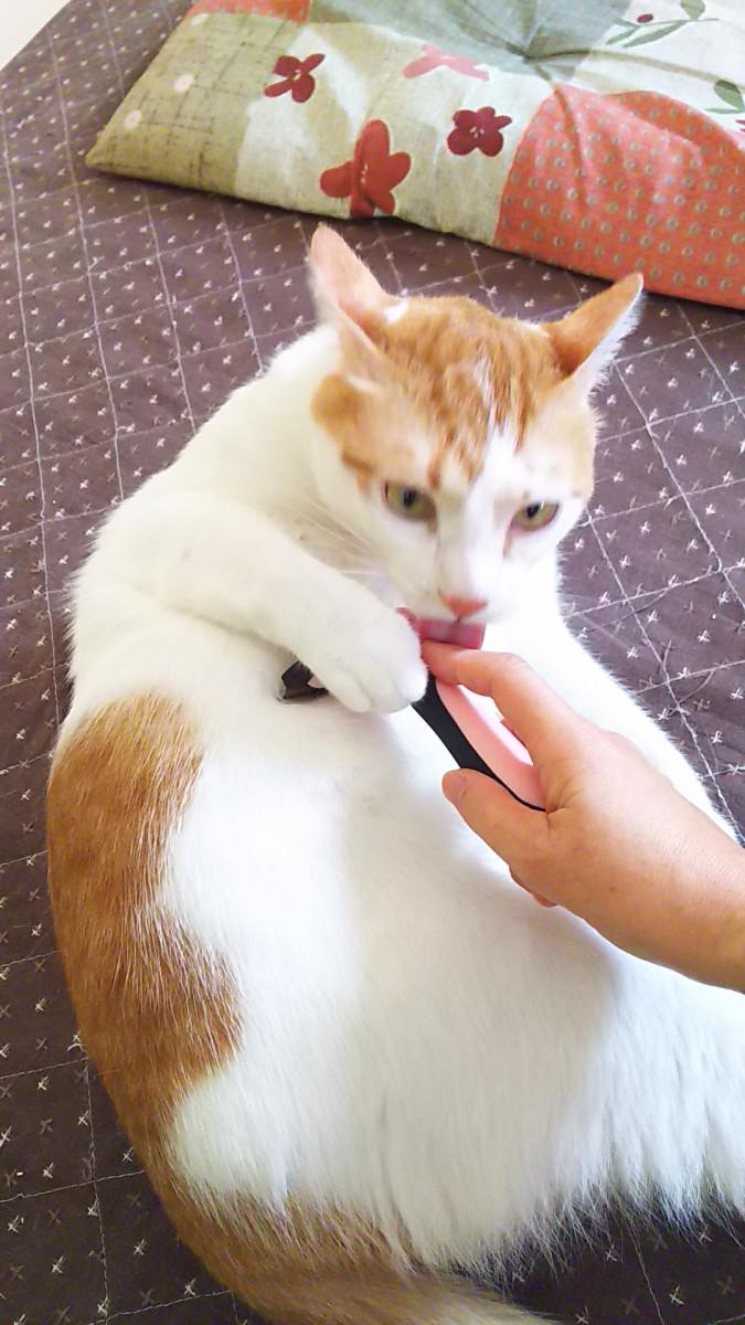 わたしの手からコームを取ろうとします