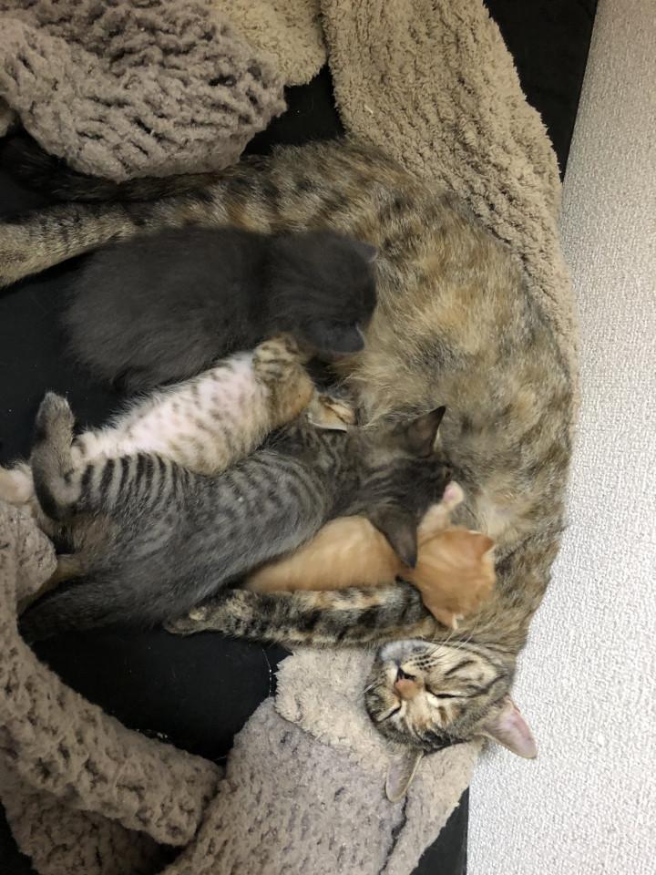 かわりばんこに子育てしてるから、母猫はちょっと楽なのかな?