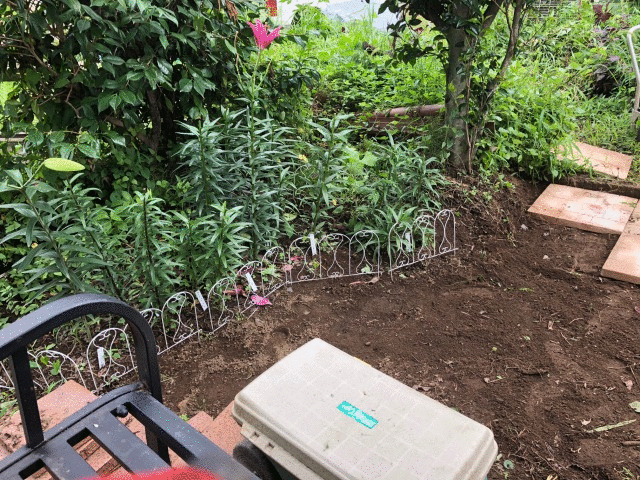 百合が植えてある辺り、あっという間に草に埋め尽くされてしまいました。