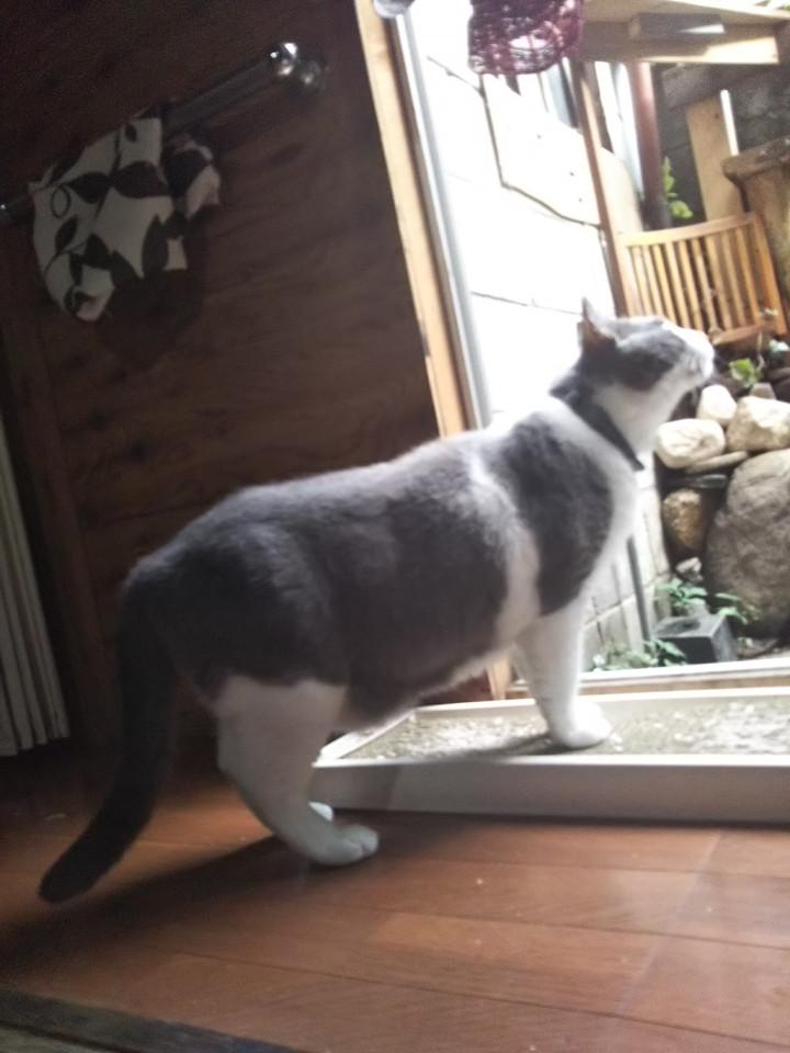 まだ触らせてくれない室内野良猫のまる子が見上げられてる( ̄□ ̄;)!!