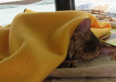 スヤスヤと眠り出してしまい、フリースのひざ掛けを毛布代わりに