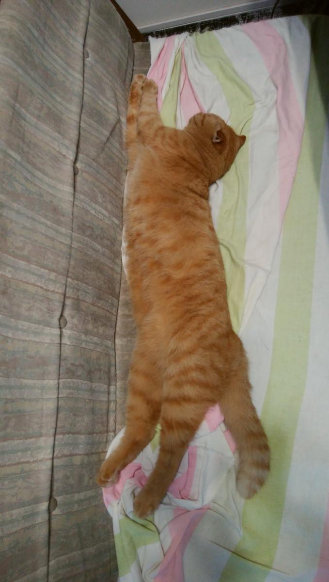 この前のやる気出したレオ!椅子の縞模様を数えて測定したら、90cm!やったわ!なかなかがんばったわね~!
