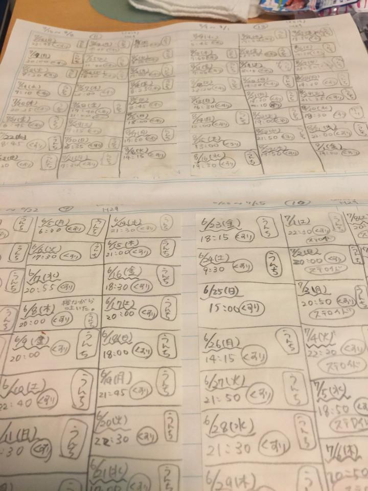 ウンチ、オシッコ、薬、体調、餌などの回数と感想が書いてあります。