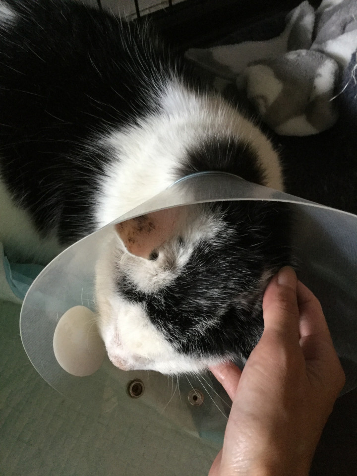 水曜日の夜から、カラー無しでもほっぺを掻かなくなり、縫合部以外はかさぶたも取れてスッキリ。