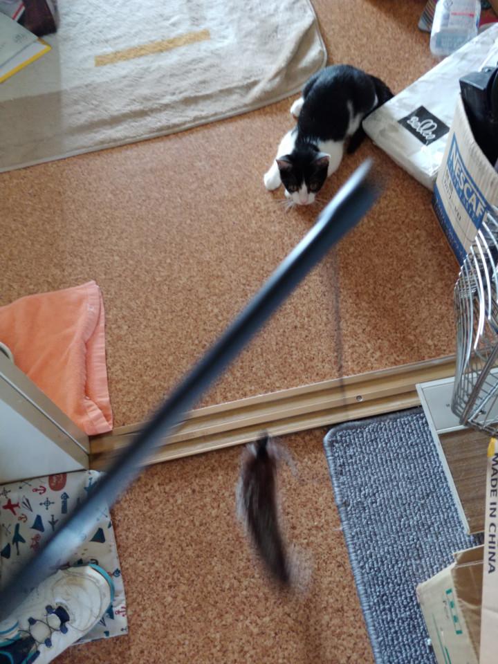 ハンティング好きな白黒(笑夢)くんもじっと狙ってすばやい動きで遊ぶ(笑)