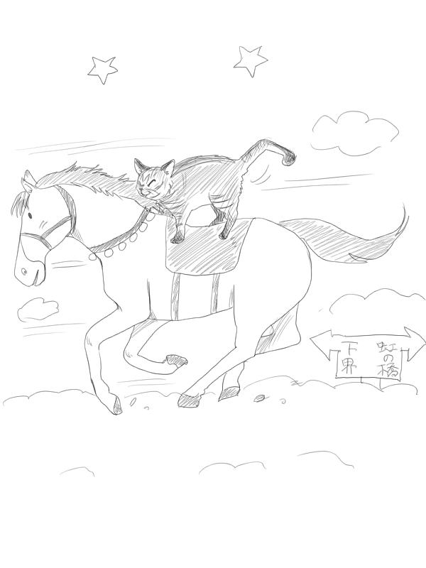 誰よりも早く、お馬の背中に乗って虹の橋から大急ぎ。