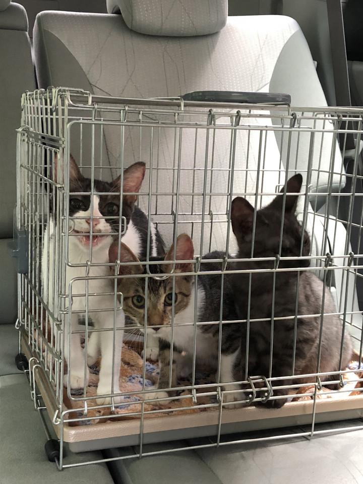 子猫ちゃん達は3匹になって健診に行く途中にパシャリ📸