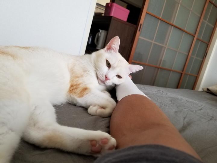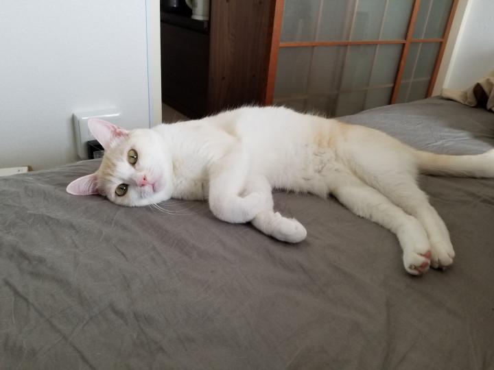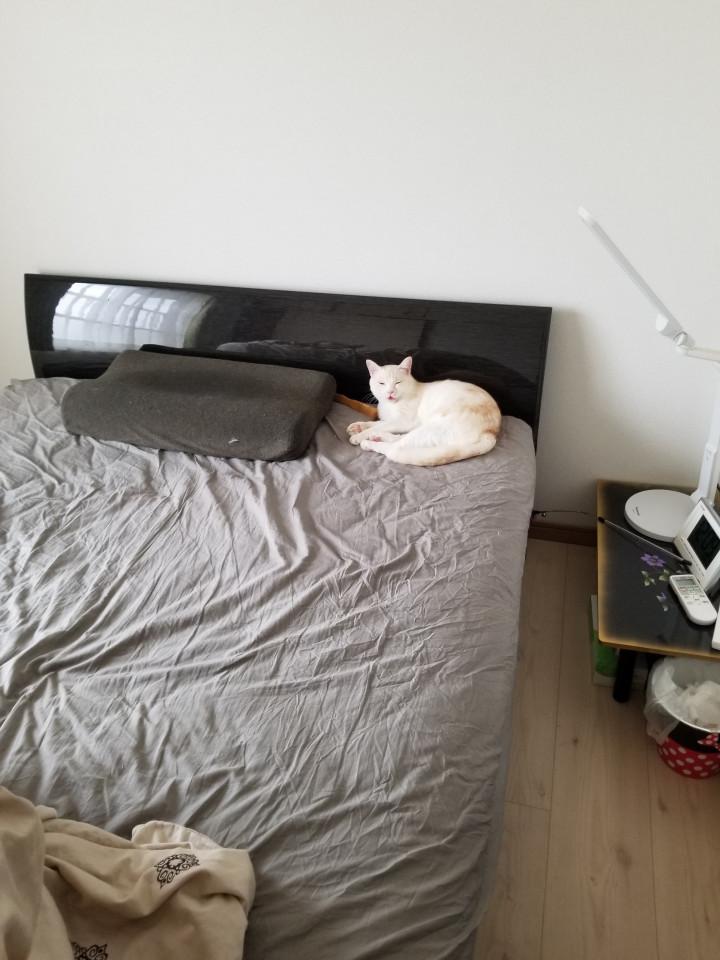 にょんがベッドで寝ていると、上がってくるようになりました!
