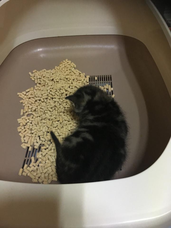 今日は初めてトイレでウンチとオシッコをしました。にゃー!と鳴いて一丁前に猫だなぁと感心しました(笑)