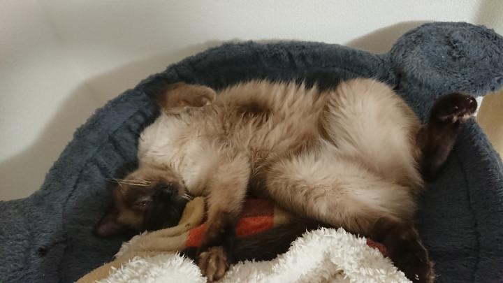 やらかした大福はお気に入りにゃんもっくで爆睡。