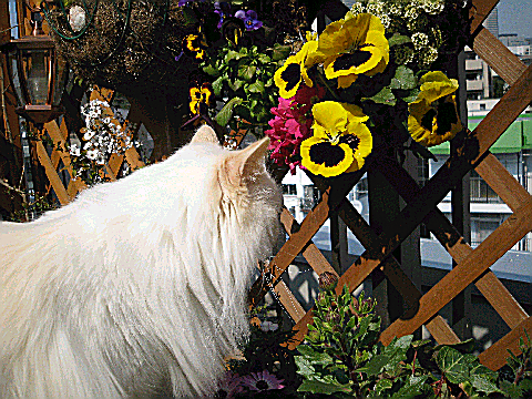 見かねたママは僕のためにラテスを張ってくれました。でも落ちたら大変!バルコニーに出してもらう時は、ママは僕から目が離せない様です。