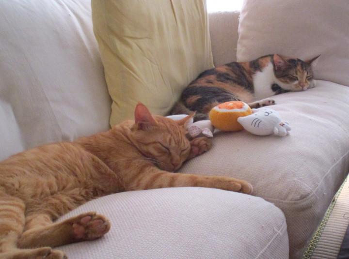おうち組のにゃう&ミミちゃんはこんな感じで・・・スヤスヤお昼寝。