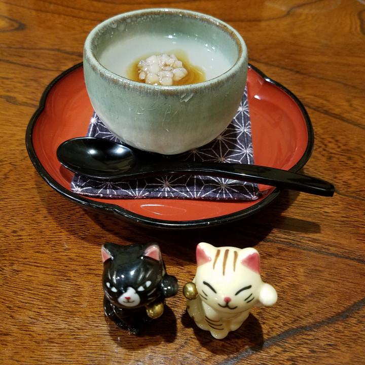 うに デザートの『そば湯のジュレ』だにゃ♪