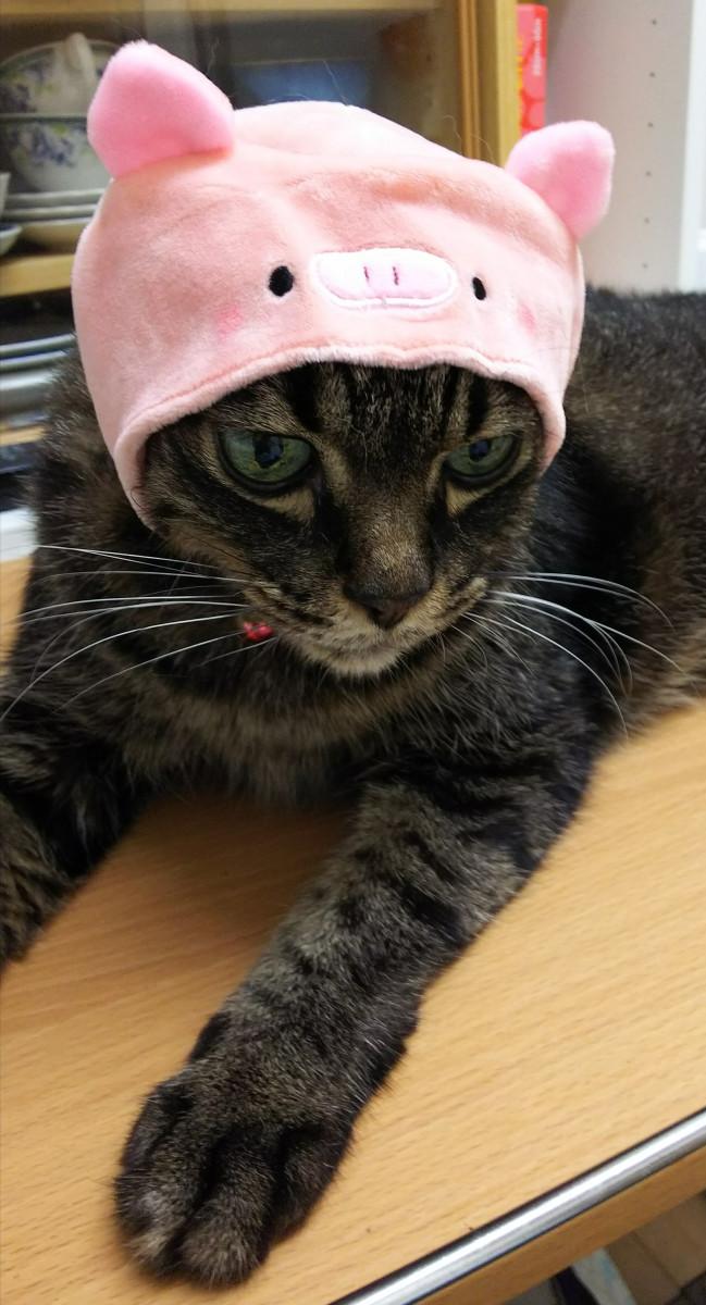 前回の日記で、載せきれなかった猫の被り物ガチャ、ブタ編。