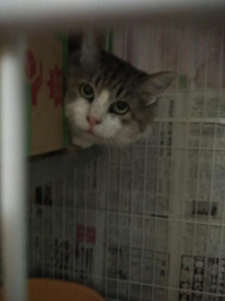 覆いの端から私を見ていました。