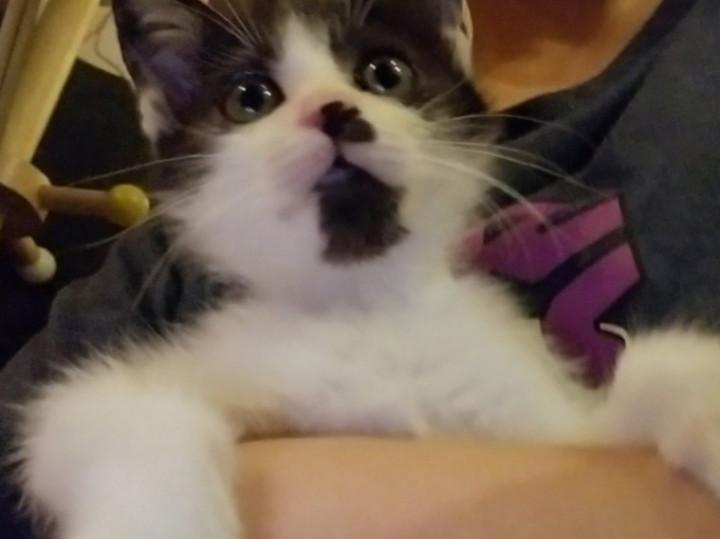 お皿はもともと家にあったやつ使ってましたが安定感ありそうなやつ買ってきました~いつもは置いた瞬間ひっくり返されてるんですが、置いてしばらくしてもこの状態でした💓