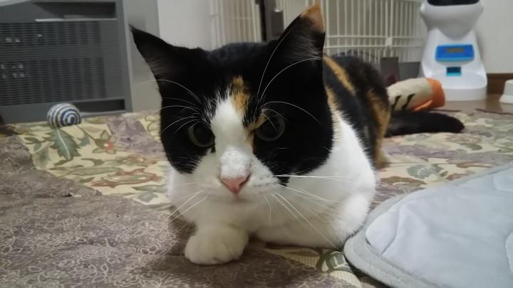2018年2月、なついていた野良猫を飼う事にしました。 三毛の女の子です。 完全室内飼いしています。外に出たがったりしないので助かります。 抱っこは苦手だけど、添い寝は大好きな娘です。