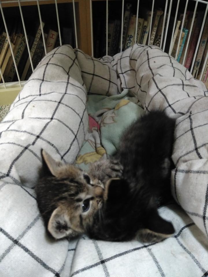 触って骨のごつごつ感がなくなってきました。毛がうちの姉妹猫がシルクみたいな手触りなのに対して、なんだかパサパサしています( ;∀;)