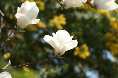 こぶしの花は満開で青空に白が映えてました。