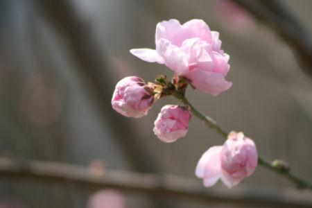 毎年開花を楽しみにしている、道端に一本だけある桃の花は