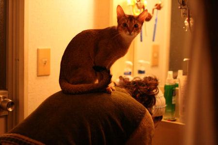小さい頃は主人の肩にしか乗りませんでしたが、大きくなって