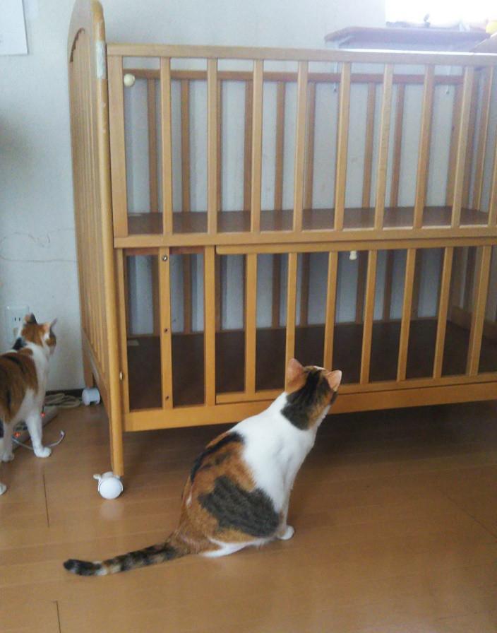 と言うわけで、ベビーベッドを出しました。