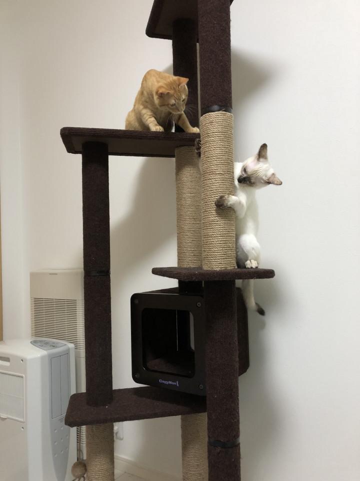 下で使っているタワーも移動させ、この部屋は猫達の遊び部屋にします!